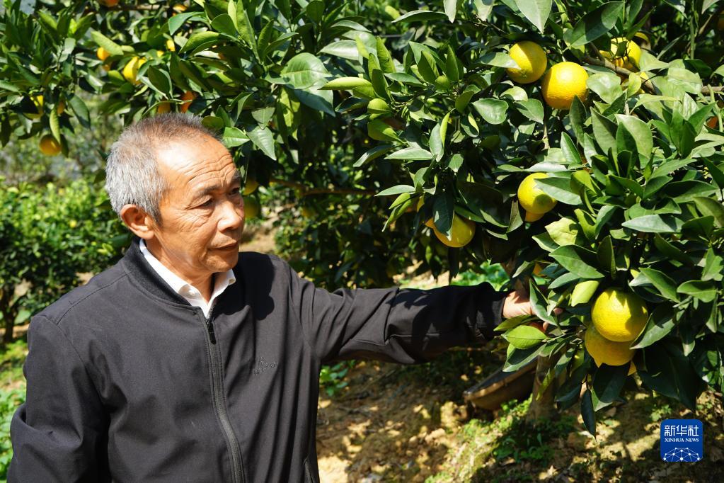 10月16日,全國脫貧攻堅楷模、重慶市巫山縣下莊村黨支部書記毛相林在自家柑橘園中查看柑橘長勢。新華社記者 李曉婷 攝