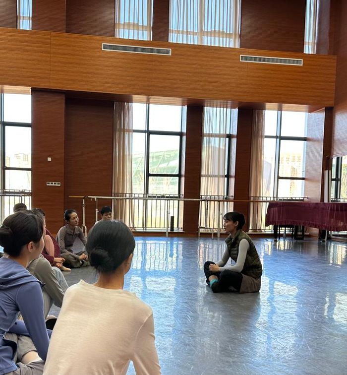 從北京回團(tuán)后,排練緊張。在精心準(zhǔn)備的黨的二十大精神集中宣講時(shí)間之外,于川雅也常常會(huì)像今天這樣,趁著排練間隙,和同事們嘮嘮大會(huì)上的新精神新部署。大伙兒一邊壓腿一邊討論,越嘮越精神。