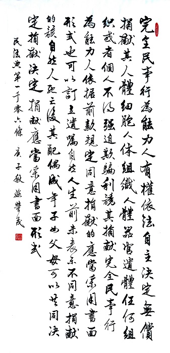 民法典第一千零六條 完全民事行為能力人有權依法自主決定無償捐獻其人體細胞、人體組織、人體器官、遺體。任何組織或者個人不得強迫、欺騙、利誘其捐獻。完全民事行為能力人依據(jù)前款規(guī)定同意捐獻的,應當采用書面形式,也可以訂立遺囑。自然人生前未表示不同意捐獻的,該自然人死亡后,其配偶、成年子女、父母可以共同決定捐獻,決定捐獻應當采用書面形式。