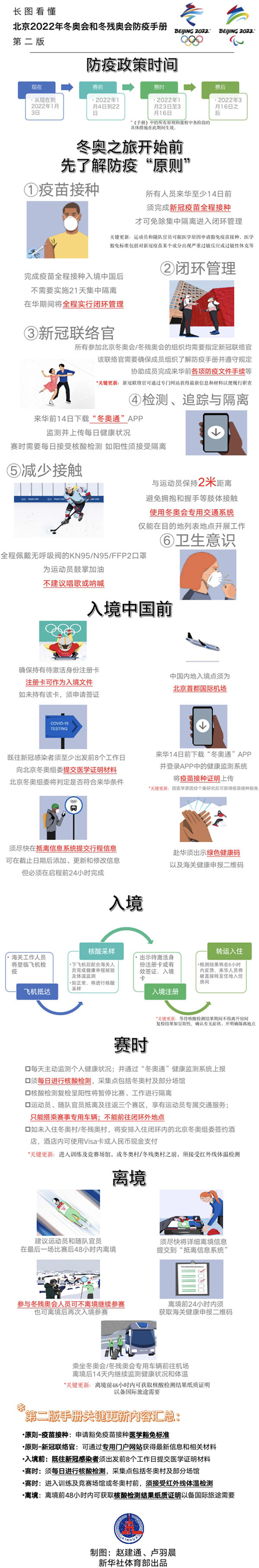 據(jù)悉,《防疫手冊》結(jié)合了中國的防疫政策,也結(jié)合了疫情下舉辦世界大型體育賽事的規(guī)律,從最初確定原則方針,到今年9月30日發(fā)布關(guān)鍵性政策,到10月25日發(fā)布第一版《防疫手冊》搭建四梁八柱,再到第二版《防疫手冊》將內(nèi)容更加細化,整個過程都是在防疫專家指導(dǎo)下,認真研究各方面政策,與國際奧委會等有關(guān)各方密切磋商,最后形成的集體智慧。