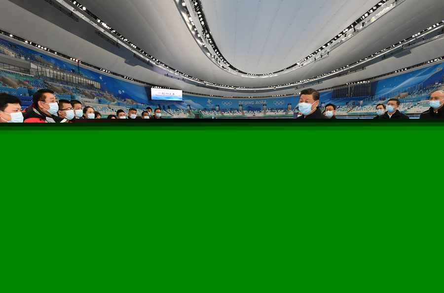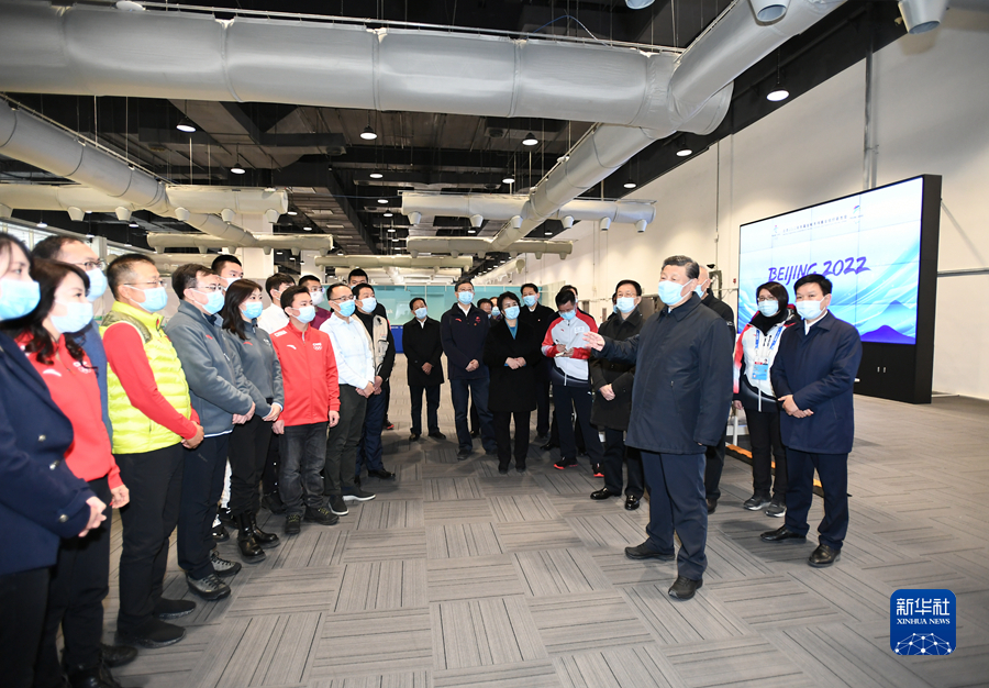 1月4日,中共中央總書(shū)記、國(guó)家主席、中央軍委主席習(xí)近平在北京考察2022年冬奧會(huì)、冬殘奧會(huì)籌辦備賽工作。這是4日上午,習(xí)近平在國(guó)家速滑館考察。新華社記者 謝環(huán)馳 攝
