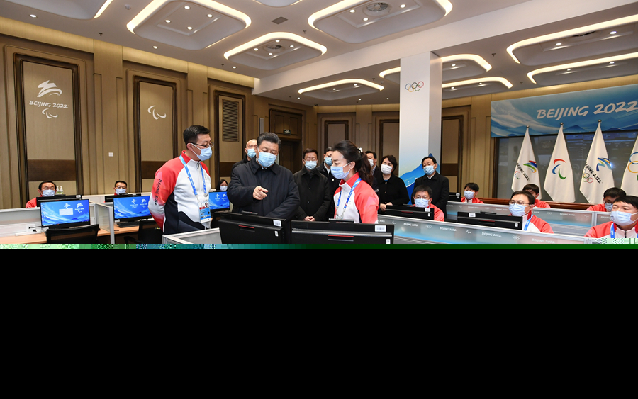 1月4日,中共中央總書(shū)記、國(guó)家主席、中央軍委主席習(xí)近平在北京考察2022年冬奧會(huì)、冬殘奧會(huì)籌辦備賽工作。這是4日下午,習(xí)近平在北京冬奧運(yùn)行指揮部調(diào)度中心考察。新華社記者 謝環(huán)馳 攝