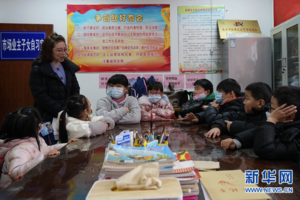 據(jù)悉,每逢周末,前來自習的孩子人數(shù)可達20人,年齡跨越幼兒園至初中,由市場管理人員輪流擔任“家長”,負責照看?!霸?,我們看到很多小朋友蹲在柜臺里寫作業(yè)。其實,我小時候也在農(nóng)貿(mào)市場成長,特別感同身受?,F(xiàn)在既然有較好的環(huán)境條件,就要充分發(fā)揮,為孩子們創(chuàng)造良好的學習環(huán)境。自習室自去年11月底設立以來,很受商戶們的歡迎?!?/p>
