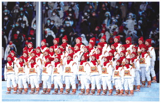 圖為“馬蘭花兒童合唱團(tuán)”用希臘語在第二十四屆冬季奧林匹克運動會開幕式上歌唱。 新華社記者 曹燦 攝