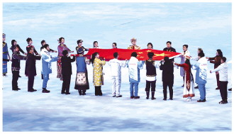 圖為在第二十四屆冬季奧林匹克運動會開幕式上中華人民共和國國旗入場。 新華社記者 蘭紅光 攝