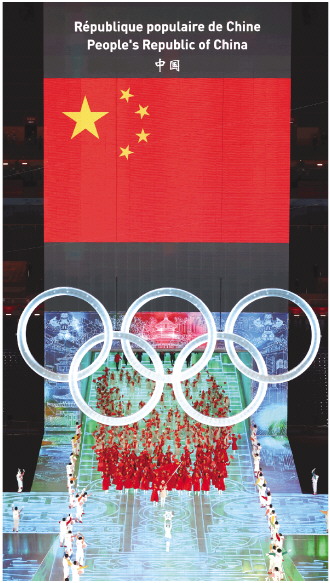 2月4日晚,第二十四屆冬季奧林匹克運動會開幕式在北京國家體育場舉行。圖為中國代表團(tuán)在開幕式上入場。 新華社記者 楊磊 攝