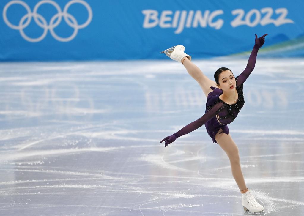 2月6日,俄羅斯奧委會(huì)選手卡米拉·瓦利耶娃在比賽中。新華社記者張玉薇攝