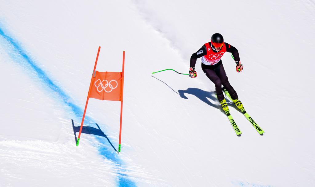 中國選手徐銘甫完成北京冬奧會男子滑降比賽