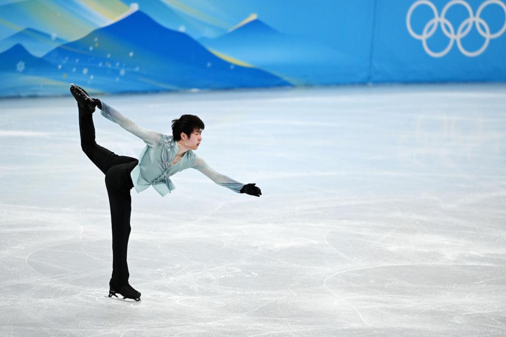 2月8日,中國(guó)選手金博洋在男單短節(jié)目比賽中。新華社記者李一博攝