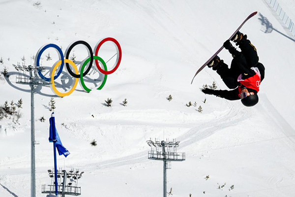 2月7日,中國選手蘇翊鳴奪得單板滑雪男子坡面障礙技巧銀牌。新華社記者肖藝九攝