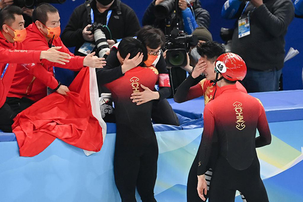 中國短道隊也在繼續(xù)書寫傳奇。繼拿到本屆冬奧會中國首金后,7日的首都體育館再傳捷報,任子威獲得男子1000米冠軍。當日的短道速滑比賽異常激烈、犯規(guī)頻發(fā),從1/4決賽到半決賽再到?jīng)Q賽,幾乎每場比賽都要經(jīng)過裁判的判罰才能決定名次。中國隊三名選手悉數(shù)晉級男子1000米決賽,而世界排名前五的選手全部出局。決賽中匈牙利隊的世錦賽冠軍劉少林雖然率先撞線,但經(jīng)裁判反復研判,劉少林最終因“同一組比賽中兩次犯規(guī)”被出示黃牌,任子威升至第一,和隊友李文龍包攬冠亞軍。