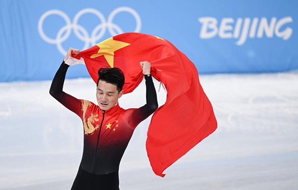 2月7日,在首都體育館舉行的北京2022年冬奧會短道速滑男子1000米決賽中,中國選手任子威奪得冠軍。新華社記者李尕攝