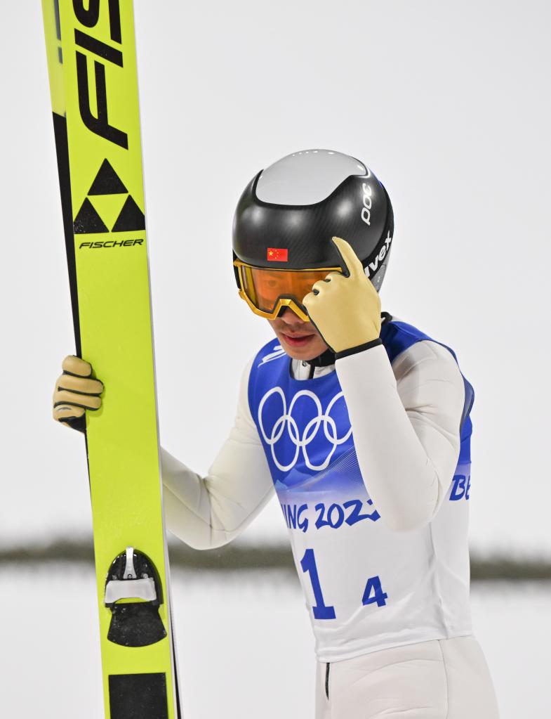 2月6日,中國選手趙嘉文在北京2022年冬奧會(huì)跳臺(tái)滑雪混合團(tuán)體比賽中。新華社記者姜克紅攝
