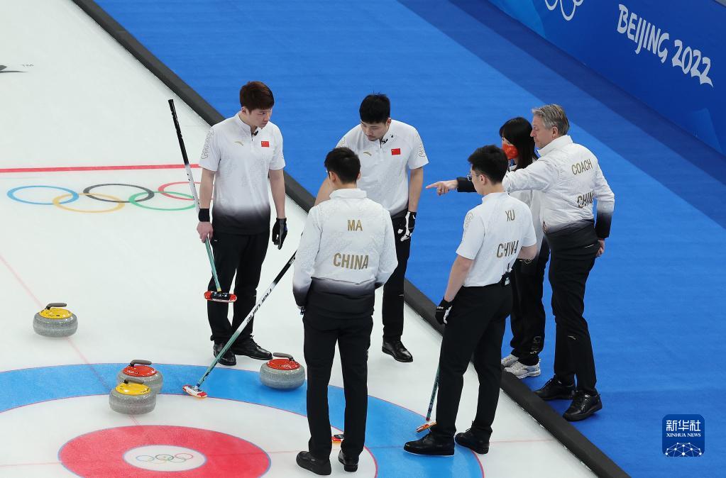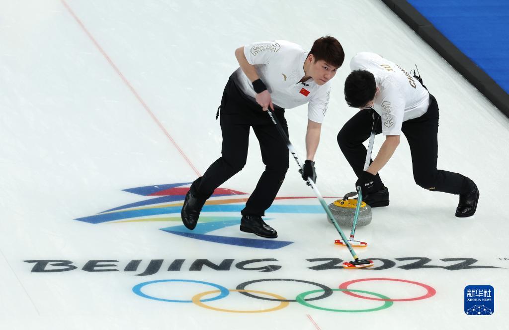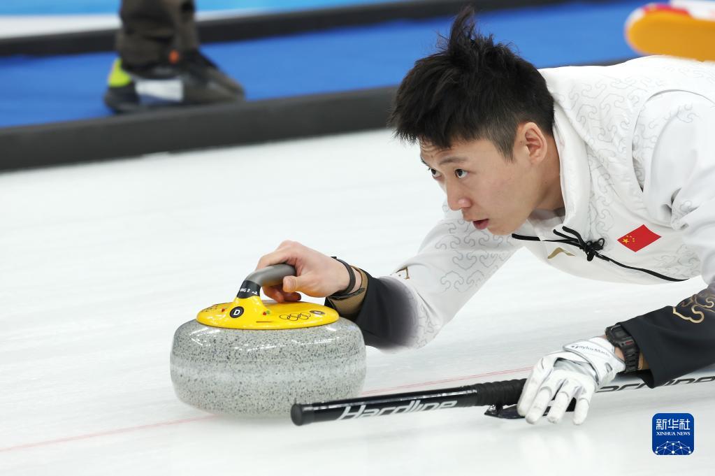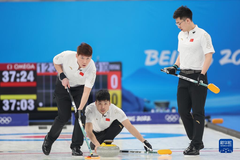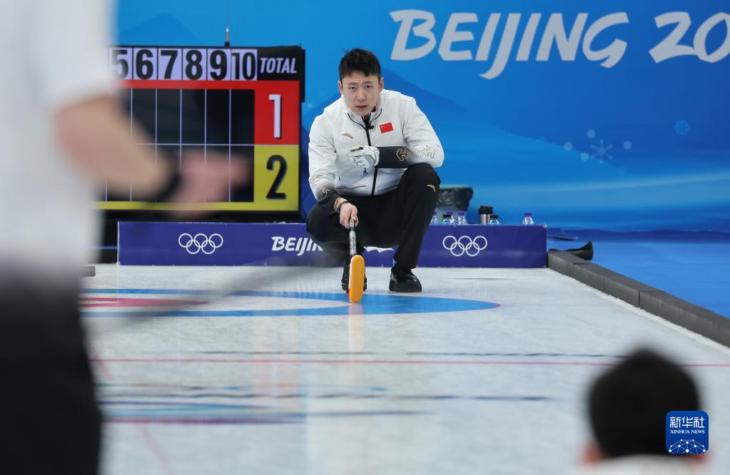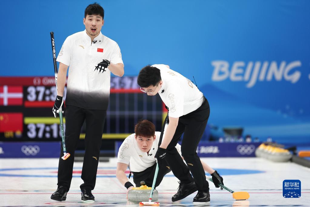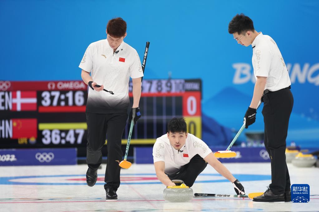 當日,在北京國家游泳中心“冰立方”舉行的北京2022年冬奧會冰壺男子循環(huán)賽中,中國隊以5比4戰(zhàn)勝丹麥隊。