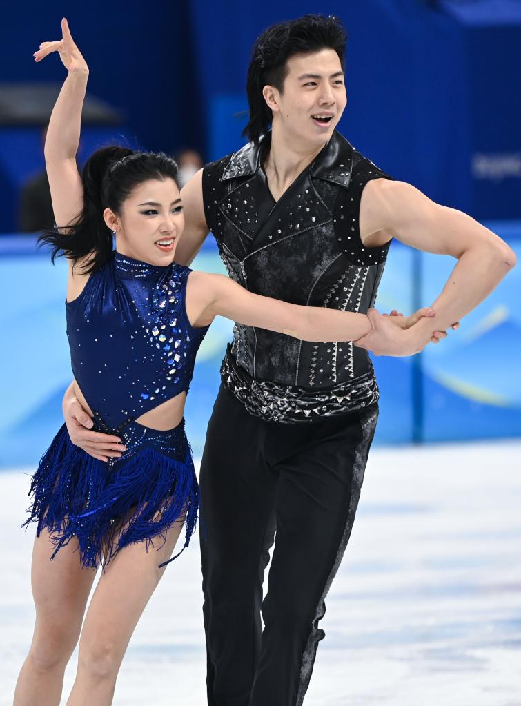 2月12日,中國(guó)選手王詩(shī)玥(左)/柳鑫宇在北京冬奧會(huì)花樣滑冰項(xiàng)目冰上舞蹈韻律舞比賽中。新華社記者馬寧攝