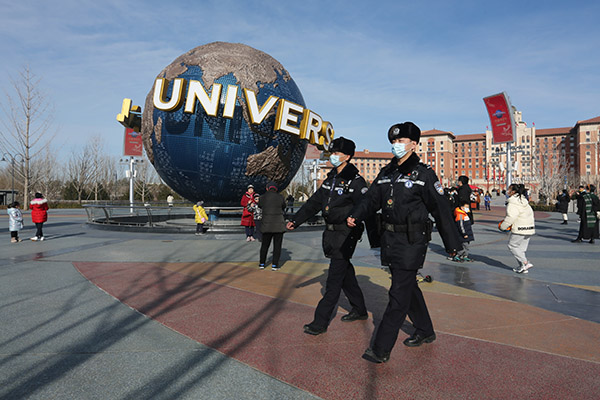 晴空如洗,游人如織。春節(jié)前夕,《法治日報(bào)》記者來到北京環(huán)球度假區(qū),跟隨北京市公安局通州分局文景派出所民警,體驗(yàn)他們“日行三萬步”的工作日常。