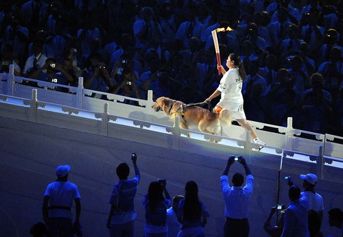 2008年9月6日,中國(guó)第一位殘奧會(huì)冠軍平亞麗在北京殘奧會(huì)開(kāi)幕式上手持火炬?zhèn)鬟f。新華社記者王頌攝
