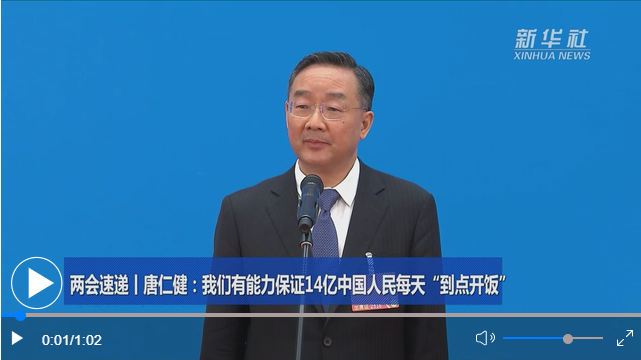 在3月5日的十三屆全國(guó)人大五次會(huì)議首場(chǎng)“部長(zhǎng)通道”上,農(nóng)業(yè)農(nóng)村部部長(zhǎng)唐仁健說(shuō),今年既要抓夏糧,也要立足全年抓好糧食生產(chǎn)。目前我國(guó)糧食供應(yīng)總量是充裕的,人均糧食占有量483公斤,比去年的474公斤增加了9公斤。不管國(guó)際形勢(shì)怎么變化,我們有能力保證14億多人每天到點(diǎn)開(kāi)飯、不餓肚子,飯碗越端越穩(wěn)、越吃越好。(記者于文靜、許可)