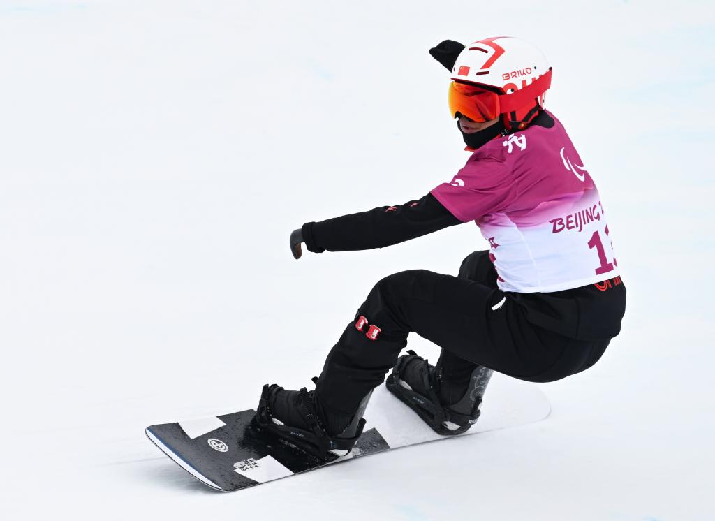 2021年3月20日,在冬殘奧會(huì)訓(xùn)練基地,國家冬殘奧單板滑雪隊(duì)運(yùn)動(dòng)員朱永鋼在訓(xùn)練