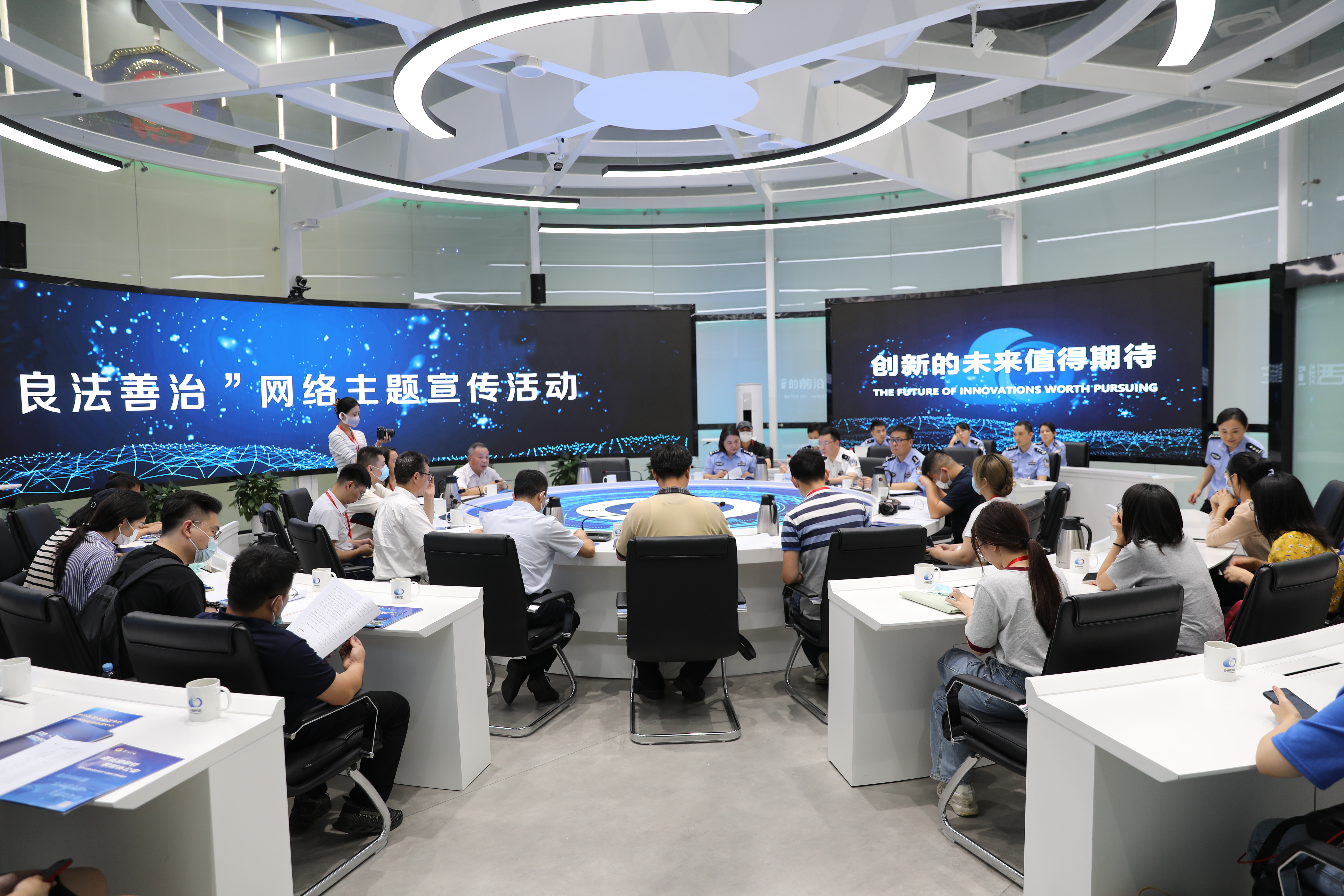 9月6日下午,“良法善治”網(wǎng)絡(luò)主題宣傳活動(dòng)采訪團(tuán)走進(jìn)杭州市公安局蕭山區(qū)分局。圖為座談交流環(huán)節(jié)現(xiàn)場(chǎng)。