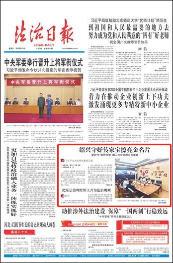 一直以來,紹興都倍加珍惜“楓橋經(jīng)驗”這個“傳家寶”,倍加呵護這張“金名片”。去年以來,紹興市起草制定《紹興市“楓橋經(jīng)驗”傳承發(fā)展條例》(目前已提請省人大常委會審議批準(zhǔn)),通過立法,把“楓橋經(jīng)驗”這一基層治理經(jīng)驗上升為普遍的法治規(guī)則,總結(jié)提煉轉(zhuǎn)化為社會治理中具有普遍意義的法治模式。
