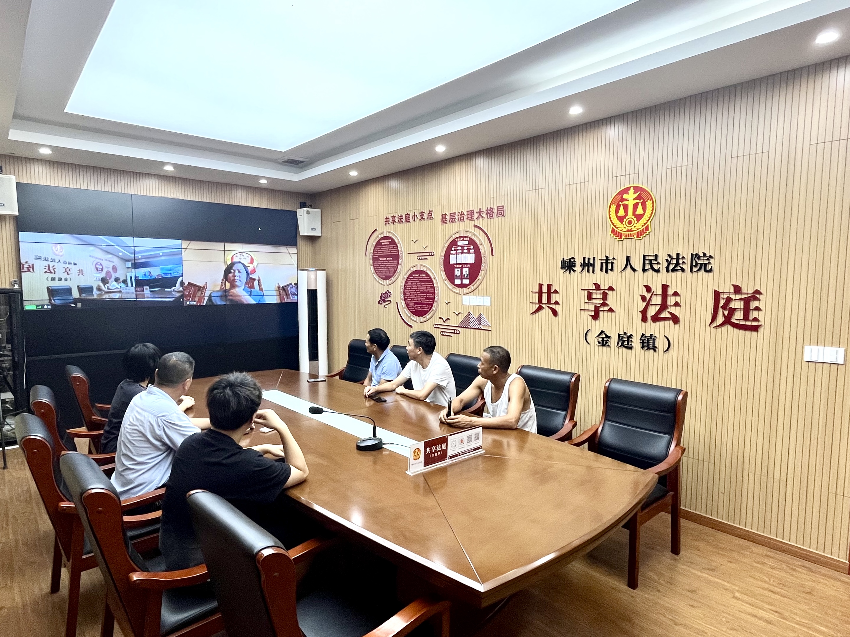 圖為2022年8月5日,紹興嵊州金庭鎮(zhèn)當(dāng)事人在“共享法庭”與法官遠程連線,在線化解糾紛。 紹興中院供圖