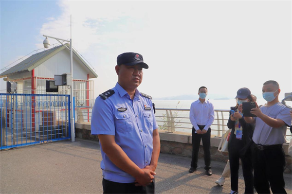 圖為北京市密云區(qū)水庫綜合執(zhí)法大隊水上分隊隊長崔小軍接受采訪
