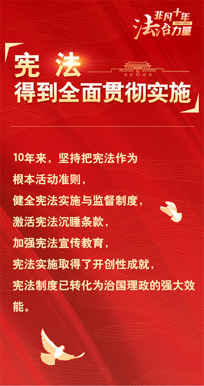 法治網(wǎng)精心策劃制作十期海報(bào),帶您一起領(lǐng)略非凡十年的法治力量!今天為您奉上第三期“憲法得到全面貫徹實(shí)施”。